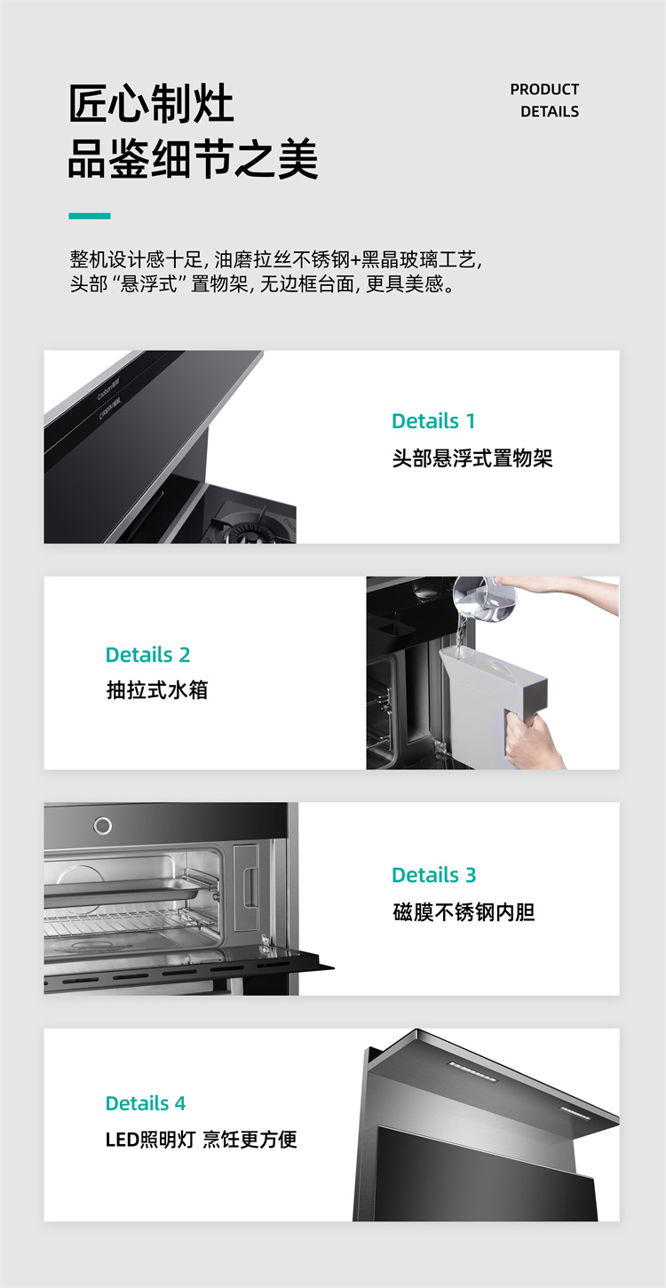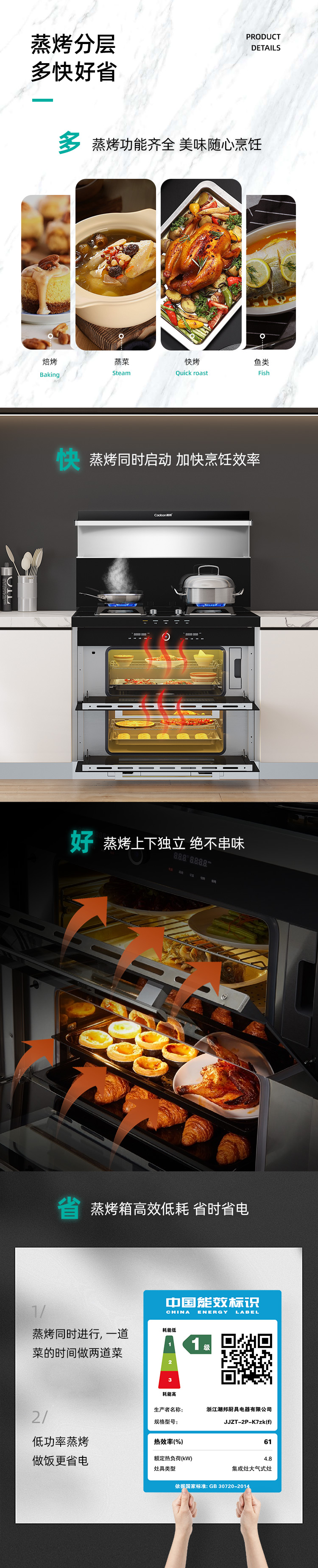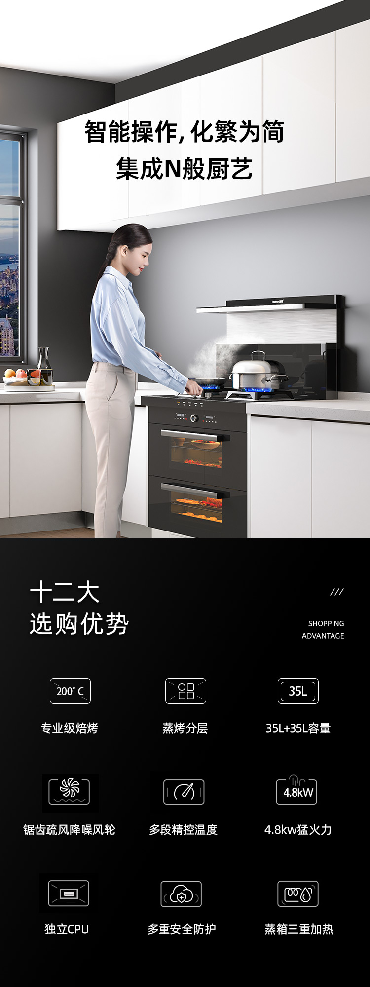 蒸烤分层集成灶,边蒸边烤,美味加倍,引领蒸烤分层新时代。